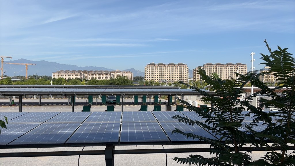 又聊了一会儿,周围景色变幻,四下一片开阔地,左右两旁不是树就是太阳能板,只在远方有一些房子,更远的地方是朦胧山影。列车在这里居然开始减速了,我们心说这不对吧,在这下来得走多久才能到延庆城区里?