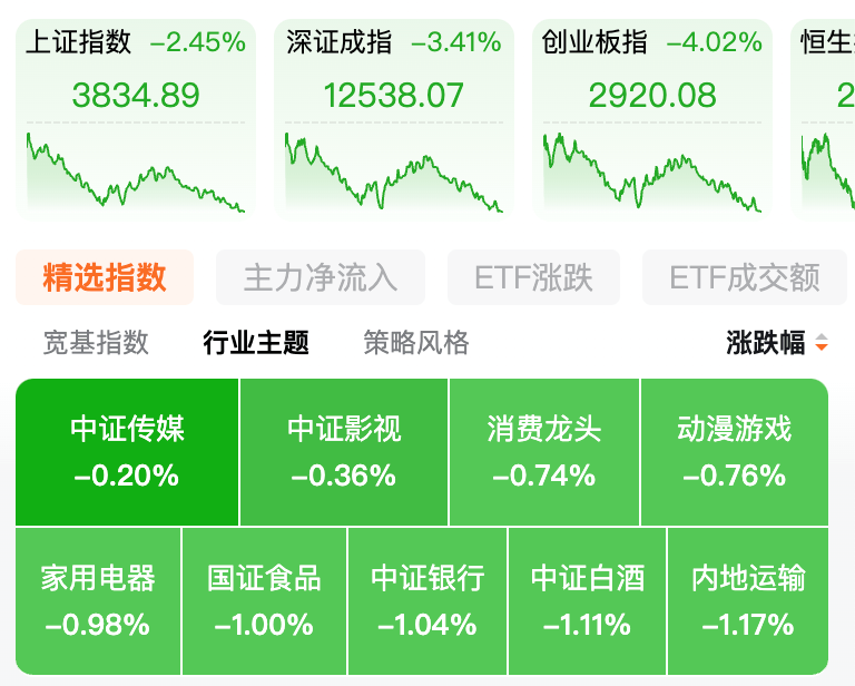 有个小程序叫红色火箭,你可以在上面查各种指数和基金,今天我一打开,直接变成绿色火箭。什么老登小登,各个板块一起跌下,可谓是众生平等: