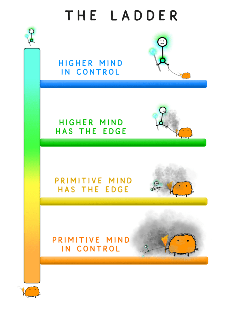 两者并存人脑,总有交集,依据你到底被哪一种心智所主导,或者说你使用哪一种心智思考,划分出四级: