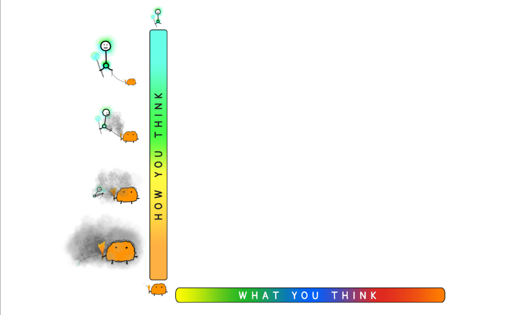 第一种,科学家。他们处在纵轴顶点,思维由高级心智主导。他们在确定自己对一件事情的观念之前,先收集信息,提出假设,然后从各方收集反对意见,在反对意见中不断完善,不断把假设精细化,才渐渐确定自己对件事情有个了解。